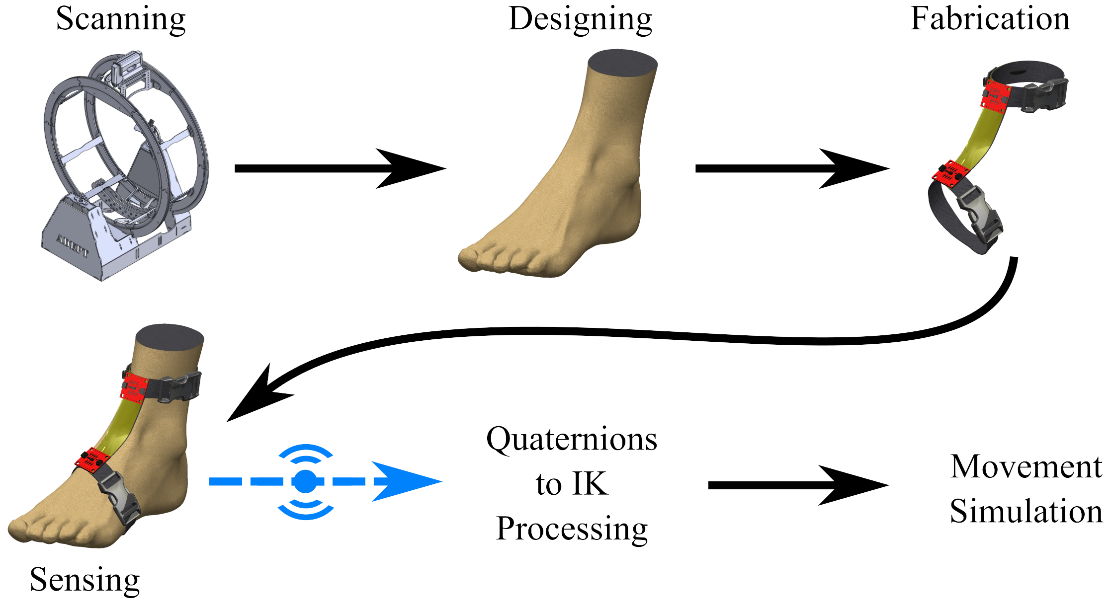 [EMBC25]This project focuses on the development of a personalized, sensorized ankle brace for injury prevention and trauma mitigation. It builds on a wearable inertial sensing platform and subject-specific anatomical modeling to accurately capture ankle kinematics. High-resolution 3D scanning informs optimal sensor placement and individualized brace design. The resulting sensor data are used for classification of high-risk movement patterns and to drive the development of an active orthosis to prevent injury or reduce its severity.
